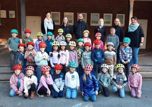 Die Schulkinder der ersten Grundschul-Klasse am Varenseller Standort wurden mit schönen neuen Fahrradhelmen ausgestattet, damit auf ihren Schulwegen für mehr Sicherheit gesorgt ist.