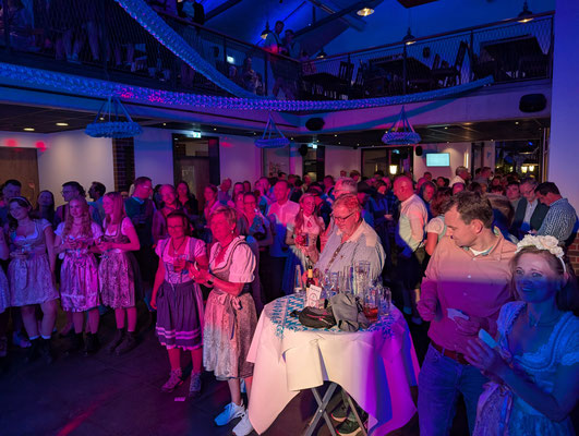 Ab 20 Uhr füllte sich der festlich geschmückte Saal zusehends. Auffallend war die nahezu vollständige Einhaltung des Dresscodes: Fast alle der rund 350 Gäste erschienen in traditioneller bayerischer Tracht, was der Veranstaltung sofort ein authentisches und farbenfrohes Flair verlieh. Lederhosen, Dirndl und zünftige Hemden dominierten das Bild und trugen maßgeblich zur ausgelassenen Stimmung bei.