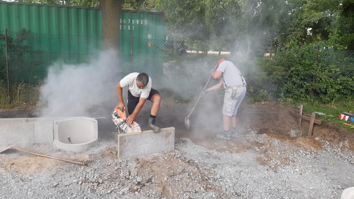 Denn ein Wochenende später schon waren mehrere Teamer an der Baustelle, um Beton zu machen.