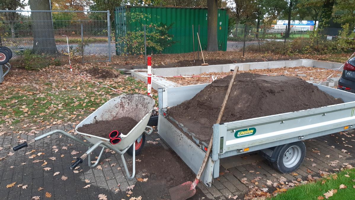 Und dann kam die Zusage zur Anlieferung und Montage des Kunstrasens von Dominik Heiler für das dritte Oktober Wochenende mit der Empfehlung seines Mitarbeiters Oleg Jenna, die offene Rinne am Zaun vorab noch mit Mutterboden zu füllen, um den Kunstrasen nicht zu beschädigen. So stellte uns Michael Lindhorst seinen Anhänger zur Verfügung, damit ich eine Ladung Erde holen konnte. Spontan und gesponsert wiederum von Monika und Matthias Dreisewerd - Dankeschön!
