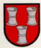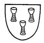 Im roten Felde, stehen drei hohe silberne Trinkbecher, in Dreieck angeordnet, dessen Spitze untenliegt.